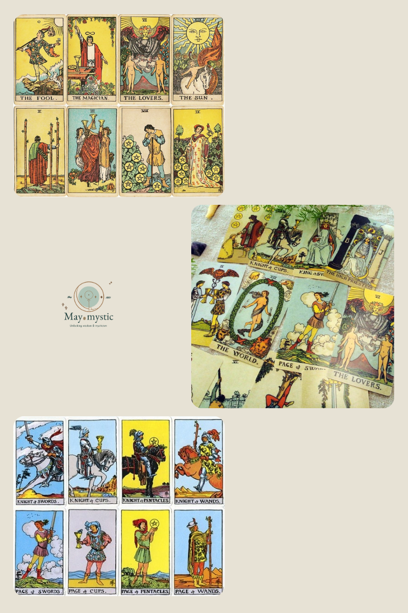 Một bộ bài Tarot gồm 78 lá, được chia thành hai phần lớn: Bộ Ẩn Chính (Major Arcana) và Bộ Ẩn Phụ (Minor Arcana). 1.